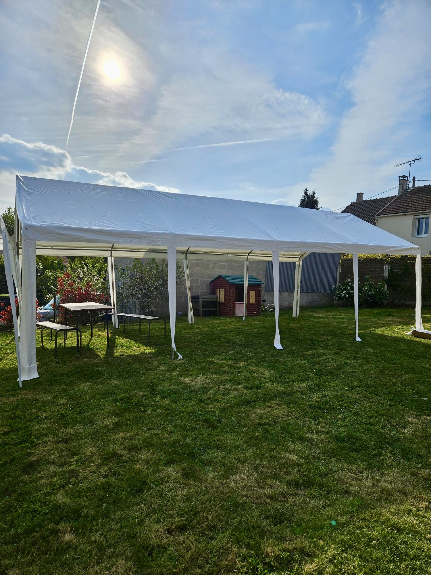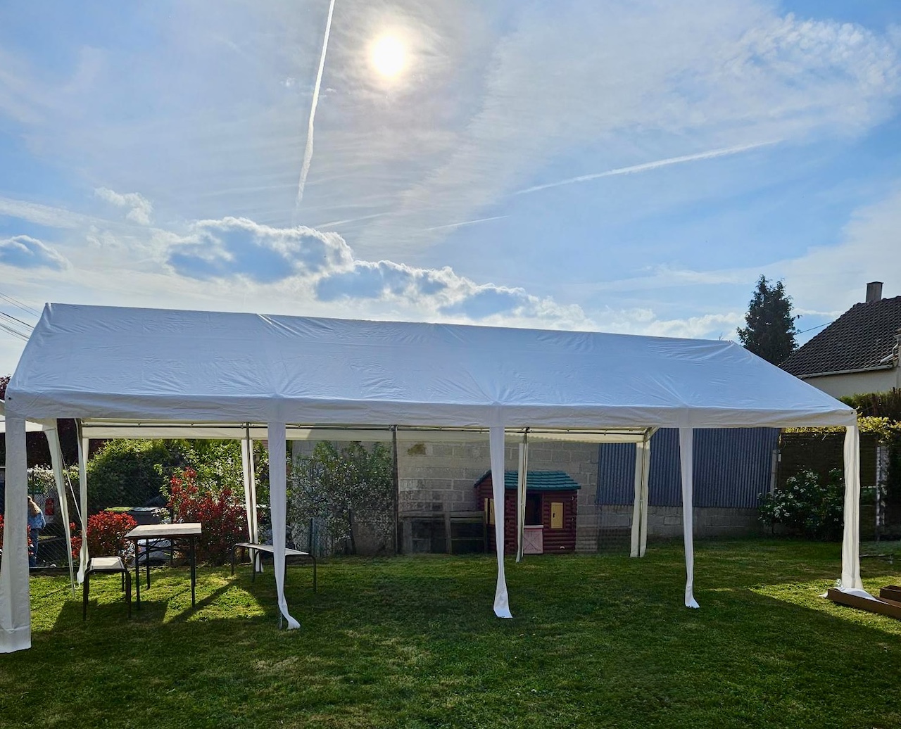 Tonnelle 3x9m, tubes en acier, entièrement fermable. Ideal, pour anniversaire, ou fêtes extérieures